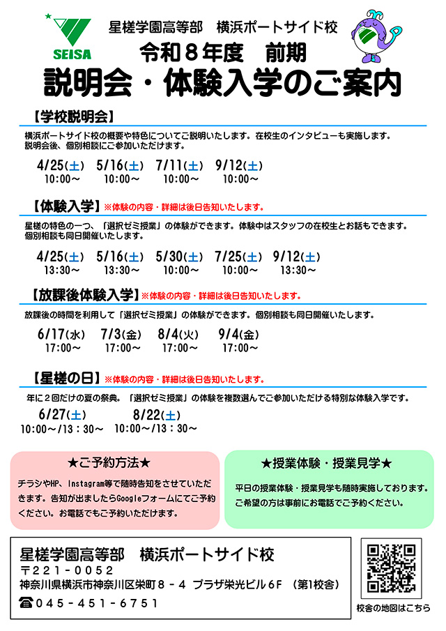 2026年前期 説明会・体験入学のご案内