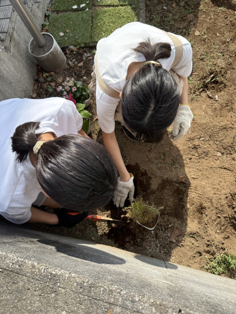 雑草を抜いて、花壇をキレイに整えるところから頑張りました!