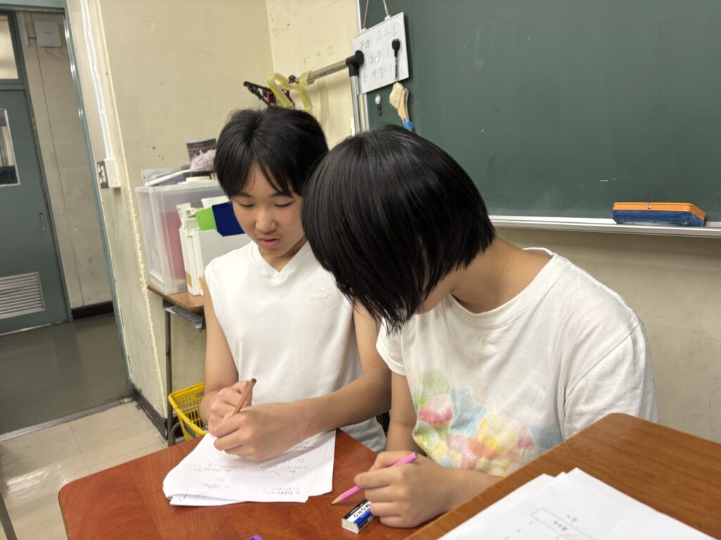夏休みの宿題や、課題を仲間同士で教え合っています!!!!!!