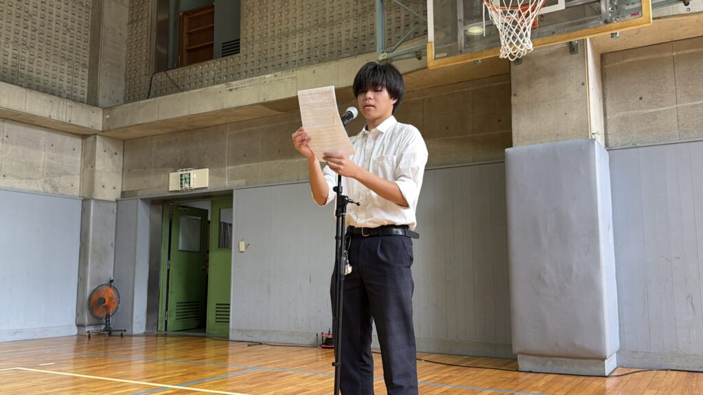 生徒代表として、3学年の生徒が発表をしてくれました。