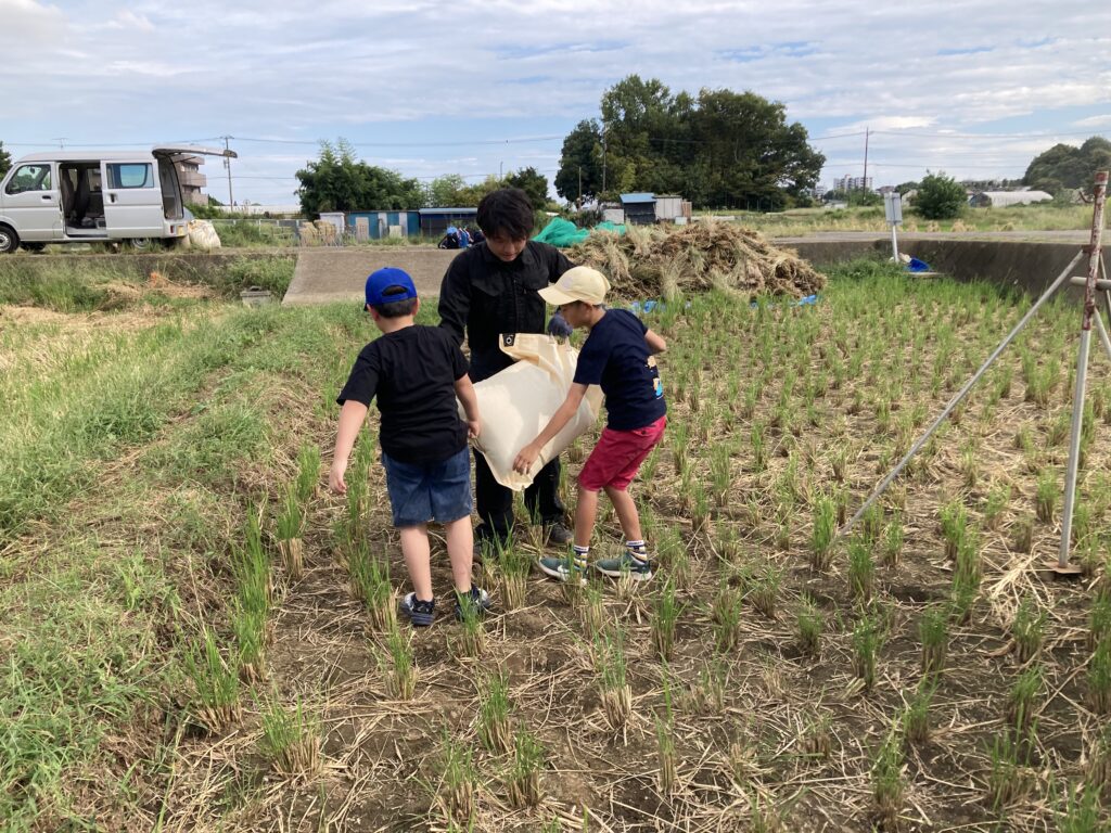 では、初等部のみんなも高等部のお兄さんお姉さんと一緒に、稲を運びましょう!🌾