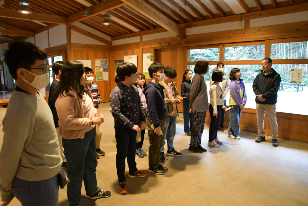 到着後は森の中の散策と休憩をはさみながら、今回体験を行う「にいはる里山交流センター」に向かいます☆