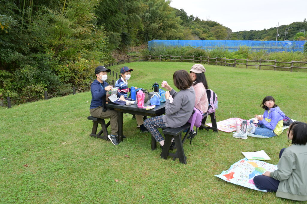 お弁当はすぐ横にある集いの家の中や前の芝生で!