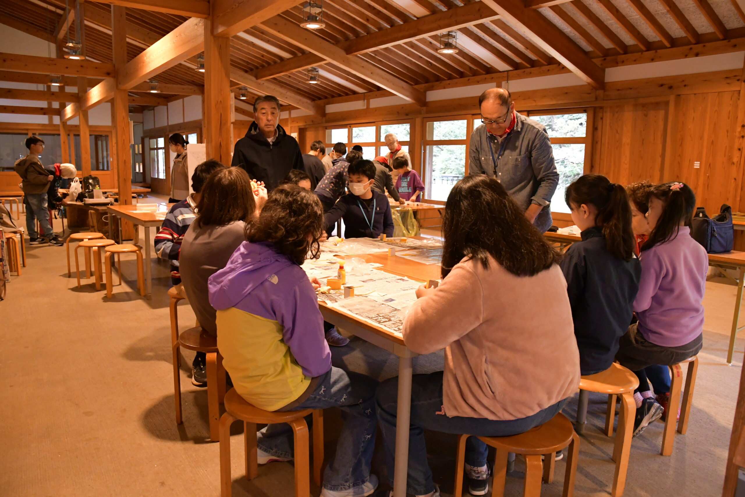 昼食後、クラフト作りを教えてくださる、ボランティア団体「遊学舎」のみなさんにご挨拶!