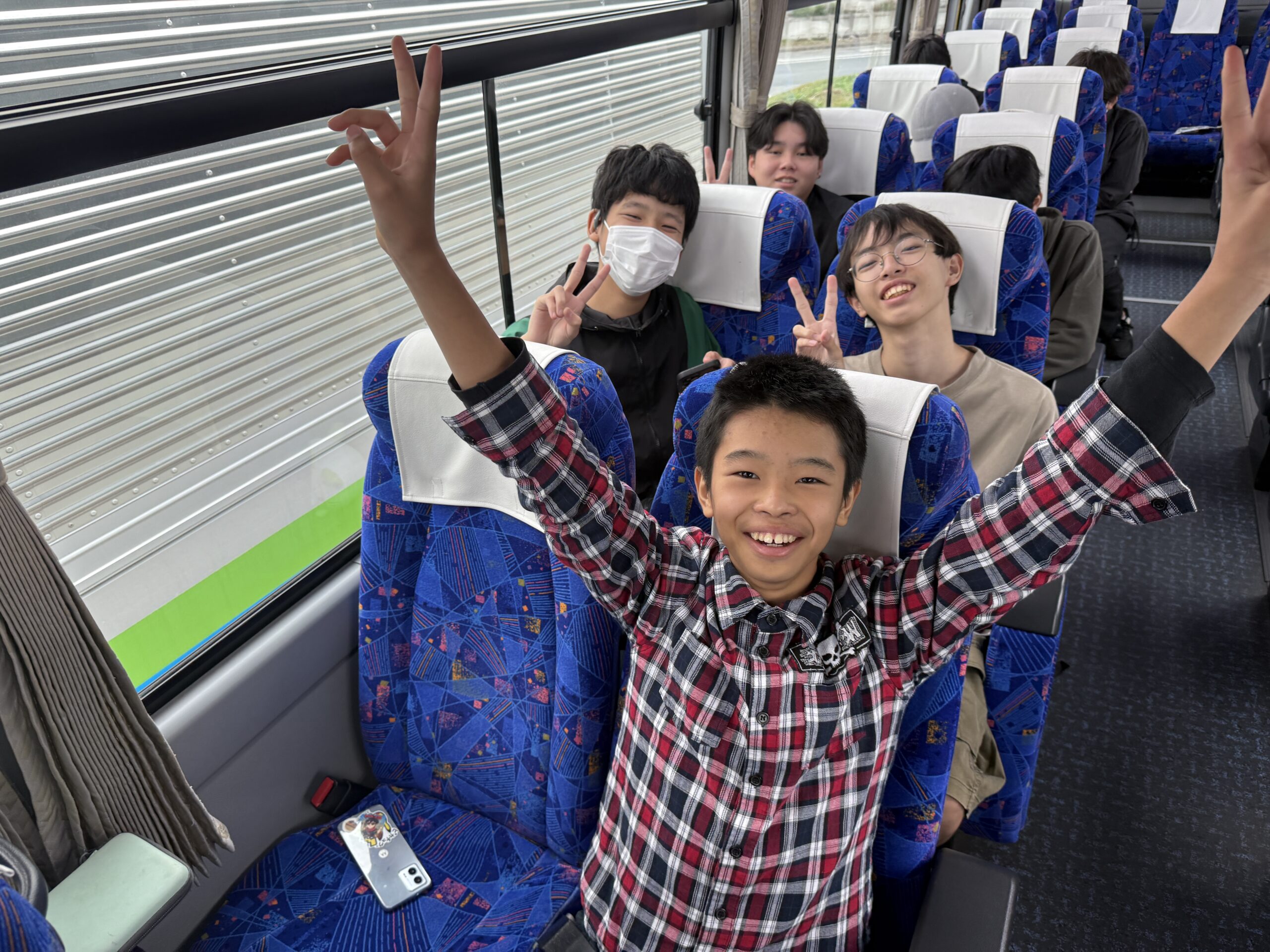 出発のバスの中から笑顔があふれ、にぎやかな雰囲気で旅の幕が開きました。