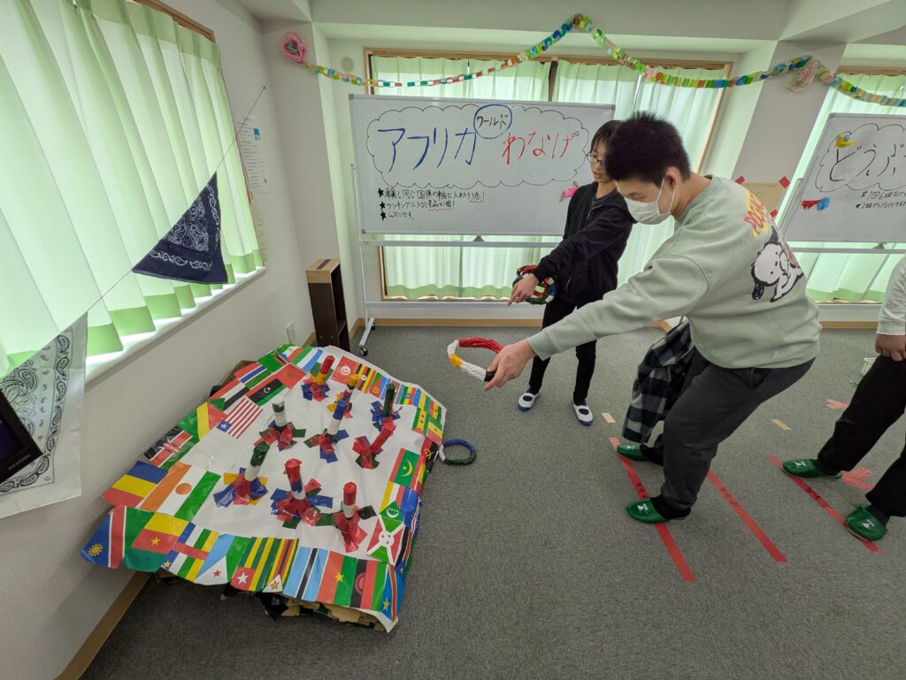 2年生は、輪投げと玉入れをミックスした“アフリカ風ミニゲームブース”を展開。