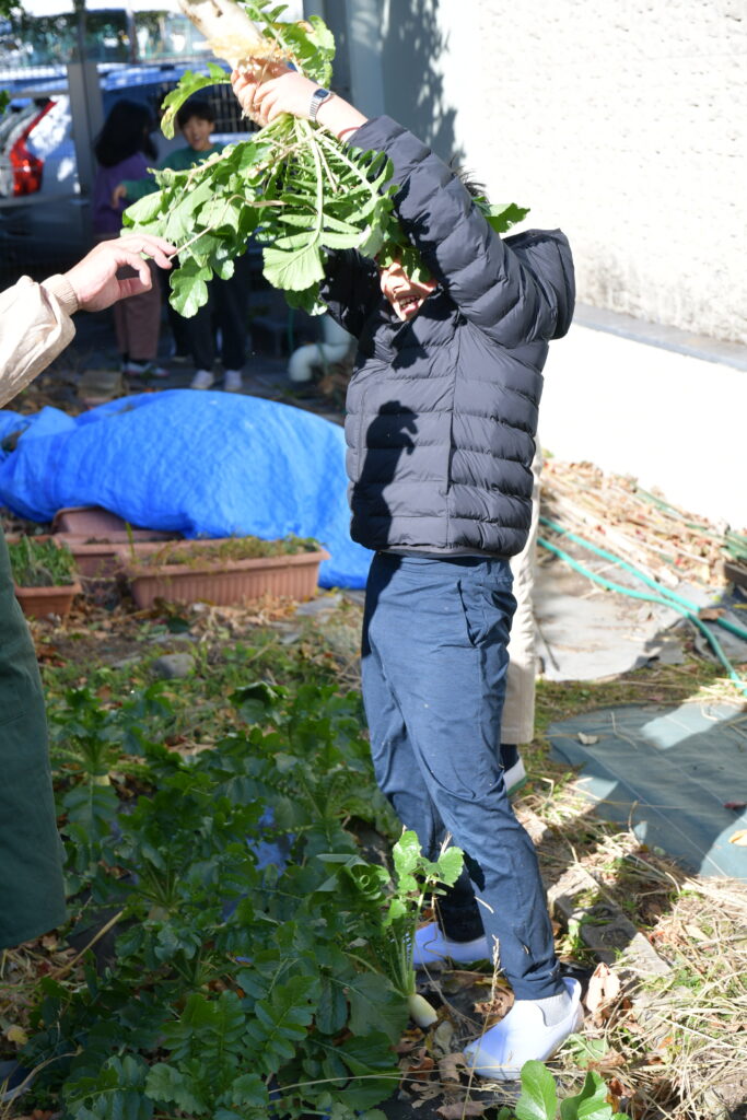 確認後、みんなで初等部ファームに行って大根を抜きます!