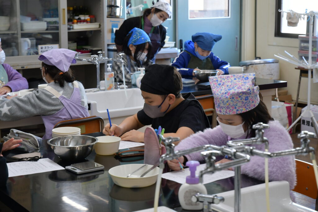 実際にはかります!どのくらい入れればいいかを班で相談しながら行っていました。