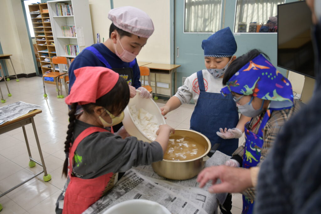 ここからは各班で話し合い、ベニェ作りチームとお味噌汁作りチームに分かれての活動です。