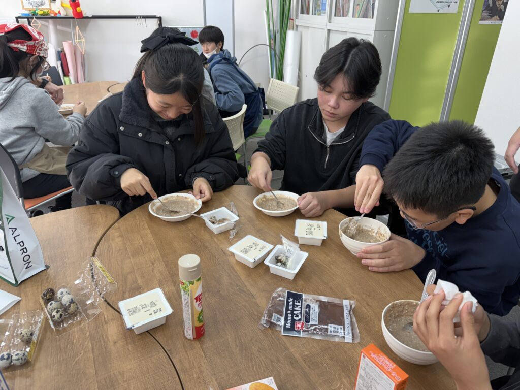 材料を混ぜてレンジでチンするだけの簡単レシピでしたが、協力しながら楽しく取り組む姿が見られました。「これで自分もマッチョになれる!」「楽しく理解できた」といった声も聞かれ、知識と体験を結びつける有意義な時間となりました。