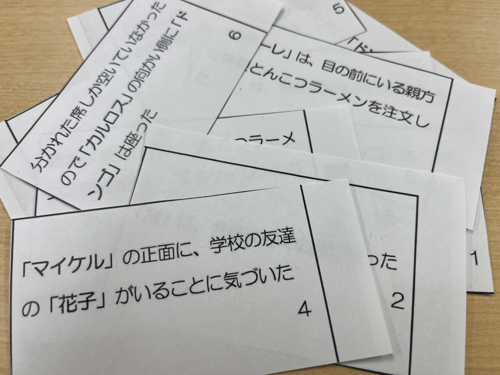 生徒一人ひとりが持っているのは、断片的な情報が書かれたカード。