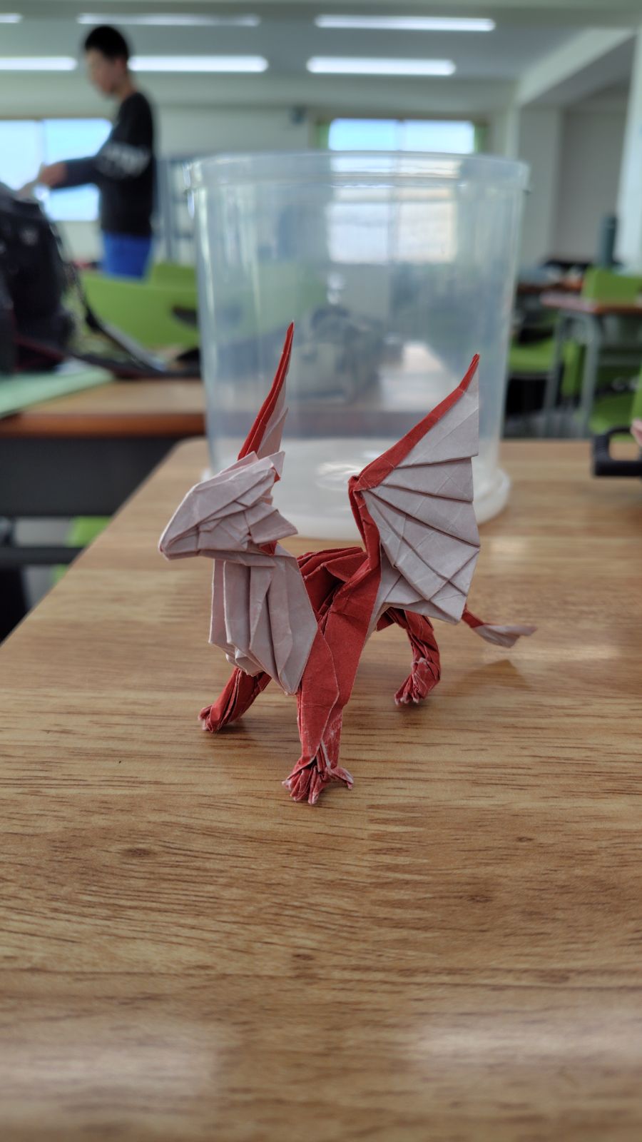 メンバーの中に、折り紙が得意な生徒がいて、少しずつ作っていたグリフォンがついに完成したのです。