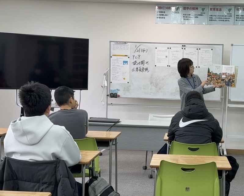絵本を聞く時間は、生徒たちが想像力を働かせ、心を動かす大切な時間です。絵本というと“子どもが聞くもの”というイメージがあるかもしれませんが、中学生になってから聞くと新たな発見があったり、想像力が広がって、毎日の生活にこれまでなかった視点やアイディアが生まれることが期待されます。
