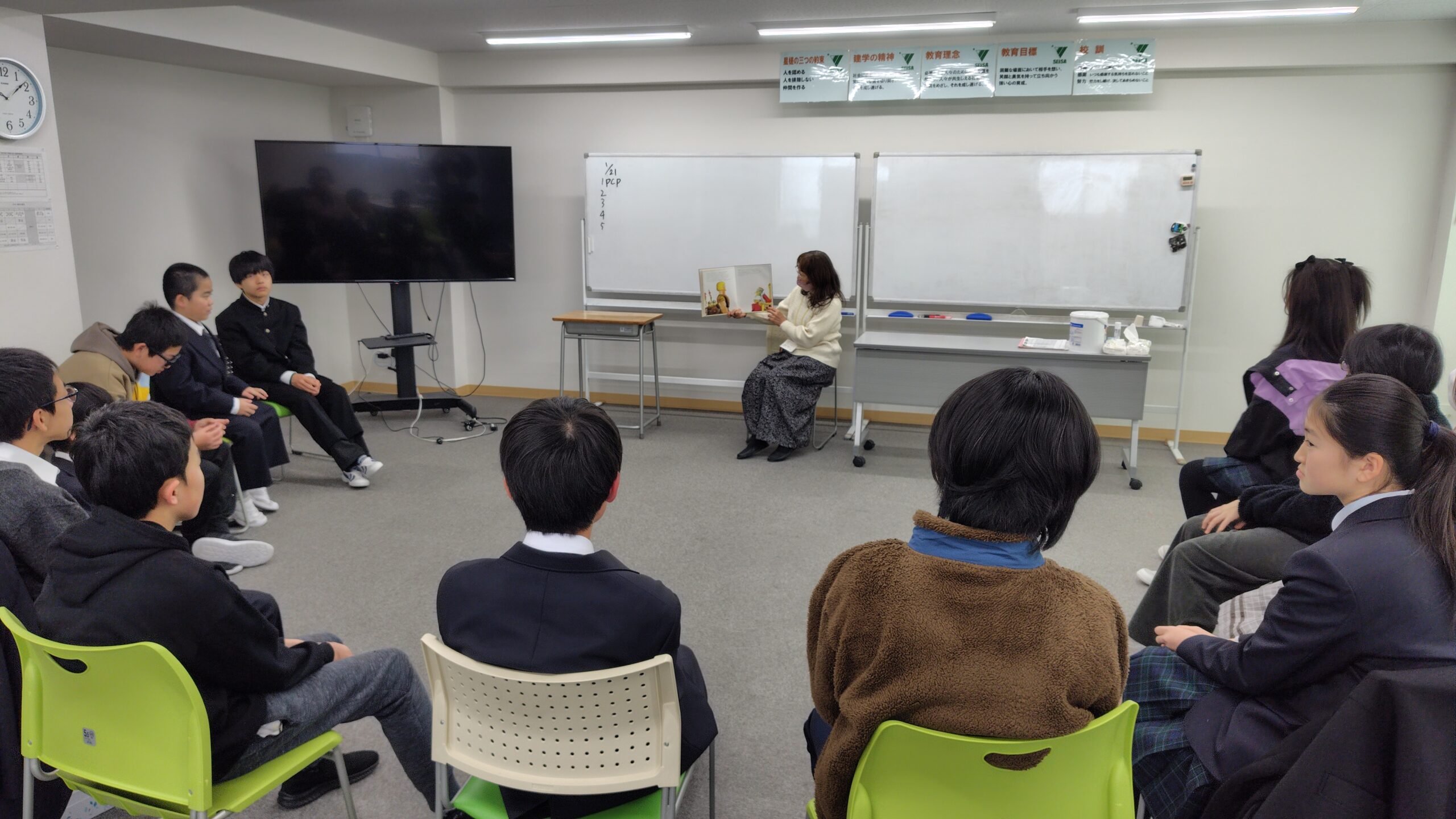 絵本を聞く時間は、生徒たちが想像力を働かせ、心を動かす大切な時間です。絵本というと“子どもが聞くもの”というイメージがあるかもしれませんが、中学生になってから聞くと新たな発見があったり、想像力が広がって、毎日の生活にこれまでなかった視点やアイディアが生まれることが期待されます。