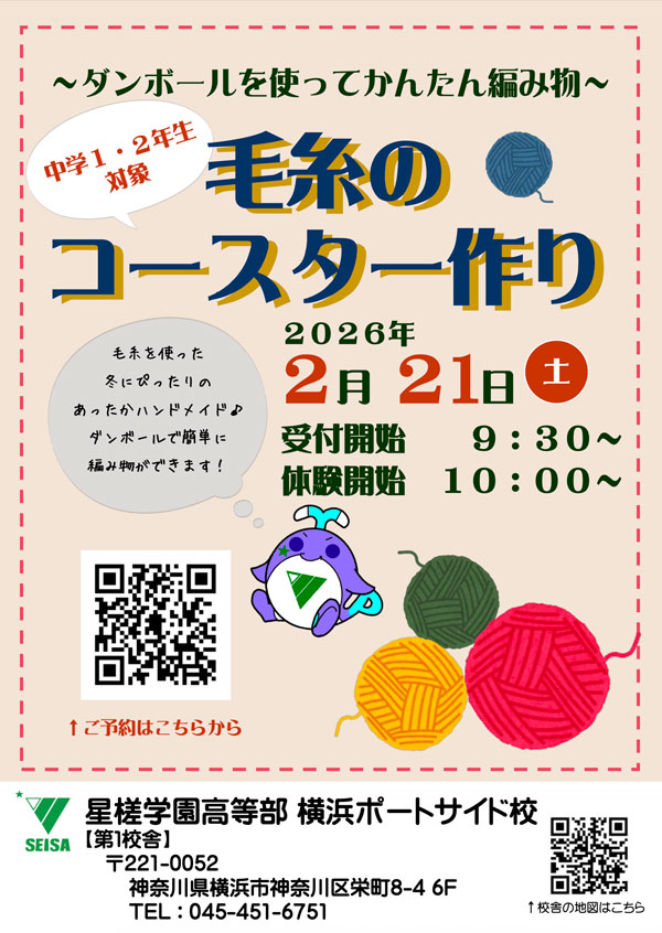 中学1・2年生対象 体験入学 「毛糸のコースター作り」